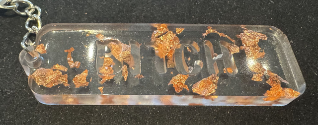 The keyrings have been made using a mold, resin and pigments/foil/glitter before being fixed to a standard key ring (25mm diameter). The overall length of these awesome keyrings is 130mm.